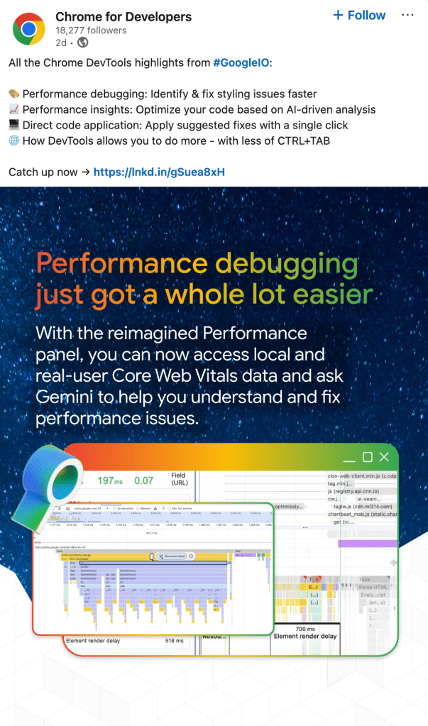 Our improvements to Performance debugging continue to be a highlight and keystone of our efforts to understand developer needs and ship user-centered products.